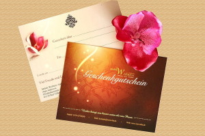 Alle Angebote sind als Geschenkgutscheine erhältlich. Auch Wertgutscheine über einen Betrag Ihrer Wahl sind möglich. Oder Sie verschenken einfach einen Zeitgutschein (z. B. 60 Minuten Massage). Der Beschenkte kann sich dann ein Angebot seiner Wahl aussuchen.